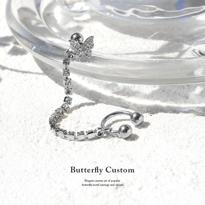 ▲set-bp-006 ボディピアス 軟骨ピアス 14G 16G 18G 蝶 バタフライ チェーン ピアス 金属アレルギー サージカルステンレス シルバー レディース セカンドピアス ストレートバーベル サーキュラーバーベル カスタマイズ かわいい キラキラ 揺れる 耳 耳たぶ 軟骨用 片耳用