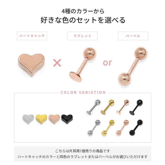 set-c-0022 ボディピアス ハート トラガス 14G 16G 18G 軟骨 ラブレット ストレートバーベル 金属アレルギー対応 つけっぱなしにできる 片耳用