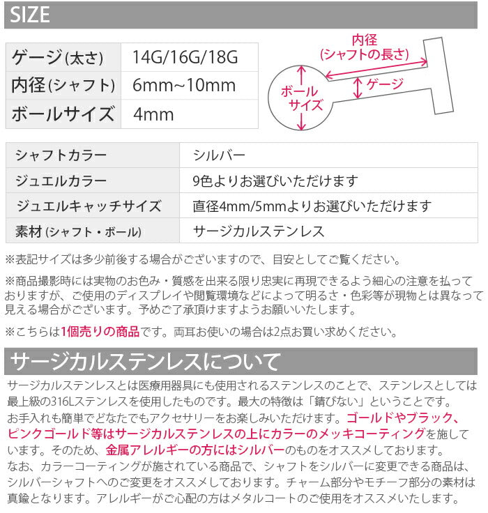 【ジュエルキャッチサイズ】4mm/5mm