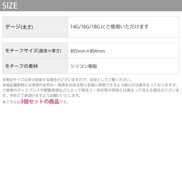 【3個セット】軟骨ピアス 14G ボディピアス 16G シリコン樹脂 キャッチ 14ゲージ 16ゲージ 18ゲージ ピアス メンズ 樹脂 片耳用 金属アレルギー ガラスピアス キャッチ