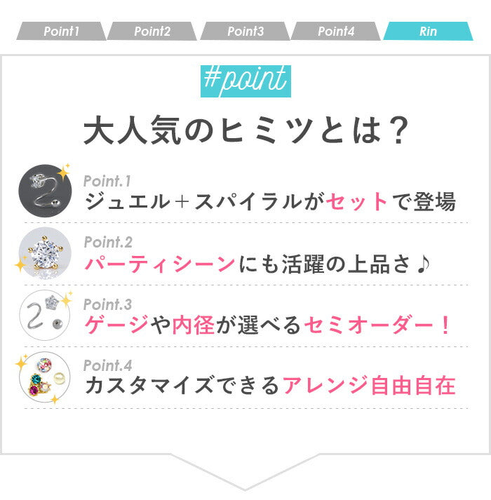 set-spi-33-54 軟骨ピアス 14G 16G ボディピアス かわいい キャッチ チャーム サージカルステンレス 金属アレルギー対応 メンズ ジュエル スパイラルバーベル セカンドピアス シルバー ゴールド パーティ 軟骨 ピアス ボディーピアス