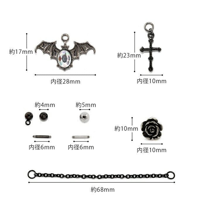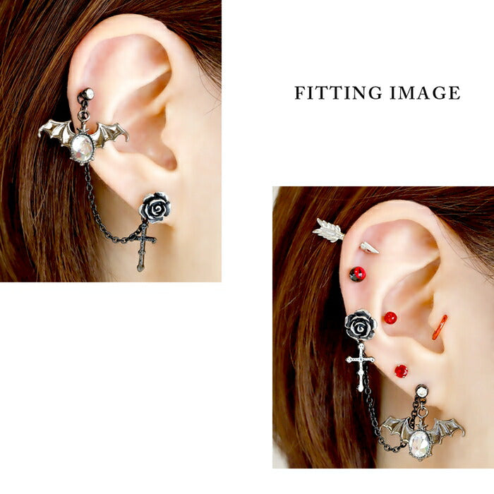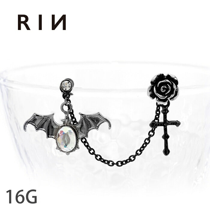 軟骨ピアス 16G チェーン こうもり クロス 薔薇 オリジナル0204 set-t1141-70-118-11