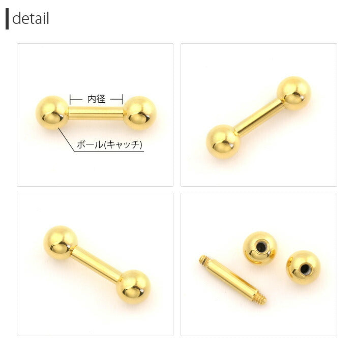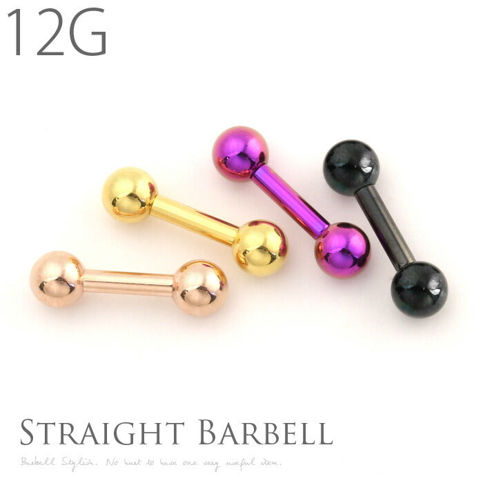 [12G]ストレートバーベル/ボディピアス/ゴールド/ブラック/スタンダード