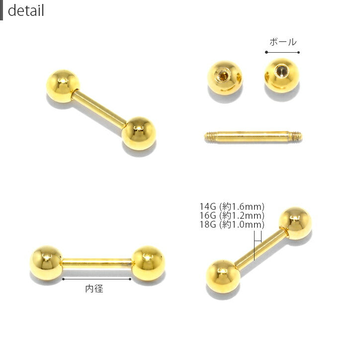 14G/16G/18G カラーストレートバーベル str-16g-gd