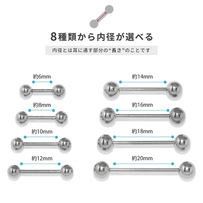 ★str-16g-sv ボディピアス キャッチ 18G 16G 14G 軟骨ピアス 舌ピアス サージカルステンレス 金属アレルギー対応 ストレートバーベル かっこいい メンズ 舌ピ つけっぱなし ファーストピアス セカンドピアス ヘリックス 片耳用 軟骨 ピアス