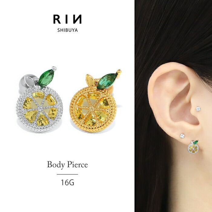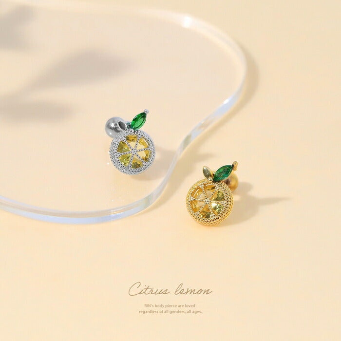 t01-004 ボディピアス 金アレ対応 つけっぱなし 軟骨ピアス 16G レモン 輪切り 金属アレルギー対応 サージカルステンレス ピアス ジルコニア レディース かわいい きらきら デイリー オフィス カジュアル 軟骨 なんこつぴあす セカンドピアス 片耳用