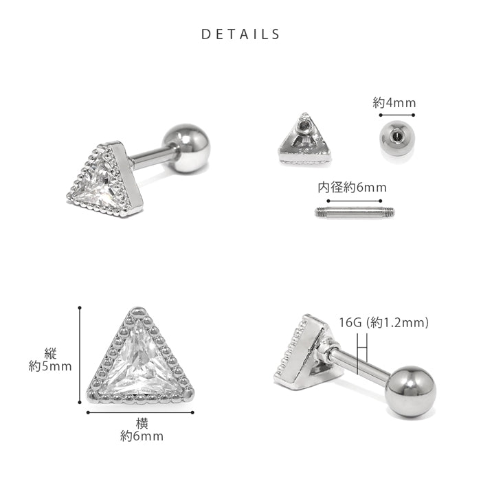 t1141-0012 ボディピアス 16G トライアングル 軟骨 ジュエル 三角 ストレートバーベル 片耳用 金属アレルギー対応