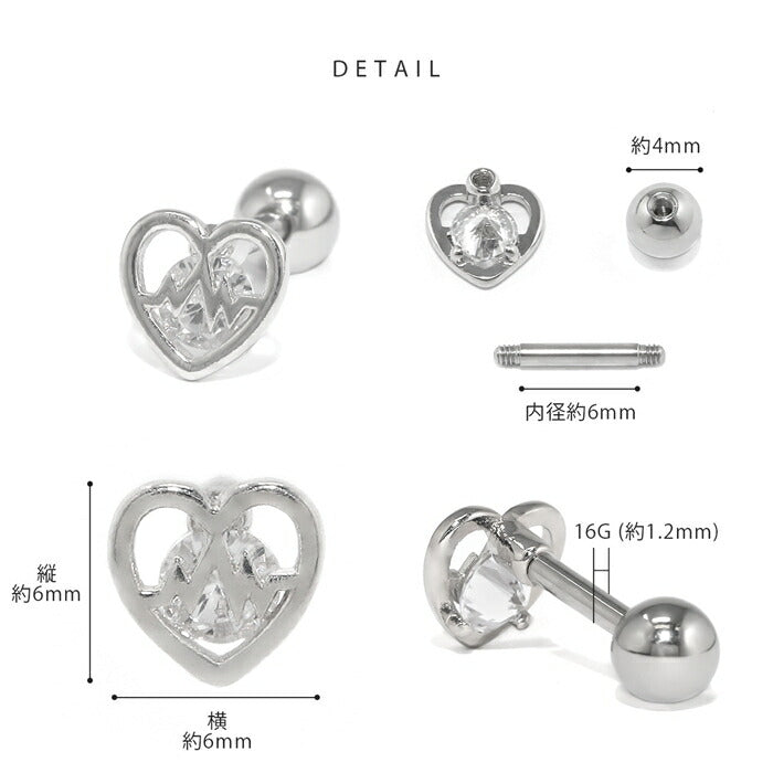 ボディピアス 16G ハート キュービックジルコニア ストレートバーベル 軟骨1455 t1141-105
