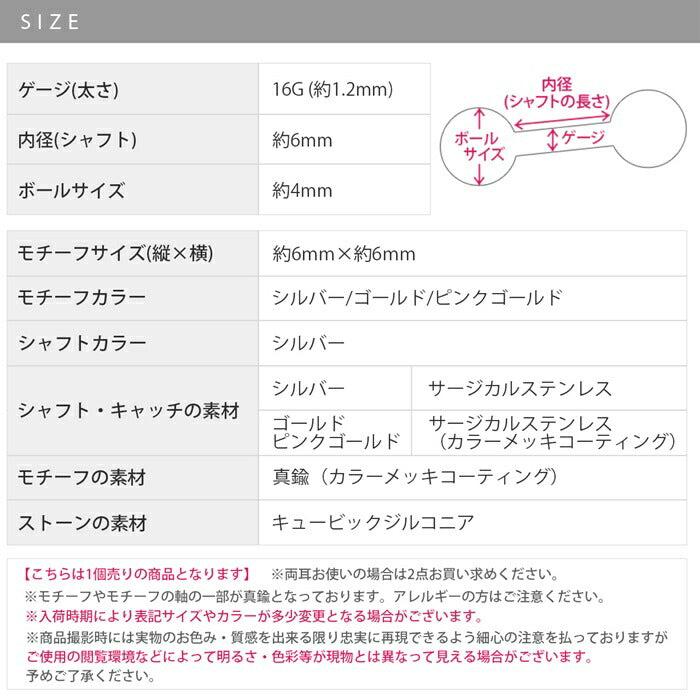※こちらの商品の一部カラーは、カラーのメッキコーティングを施しています。体質によって着けたままにされますと、メッキコーティングが剥がれる可能性がございます。