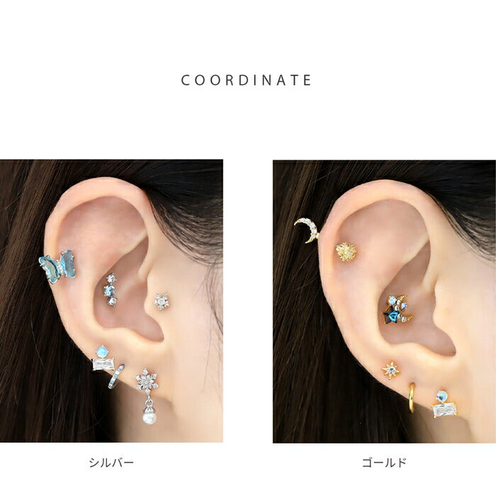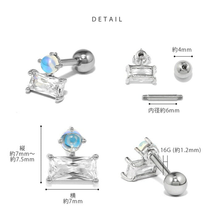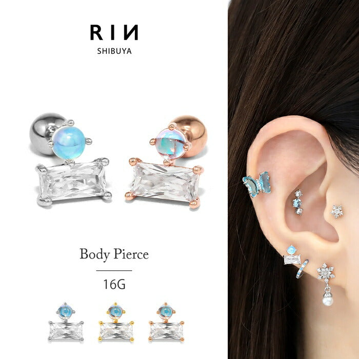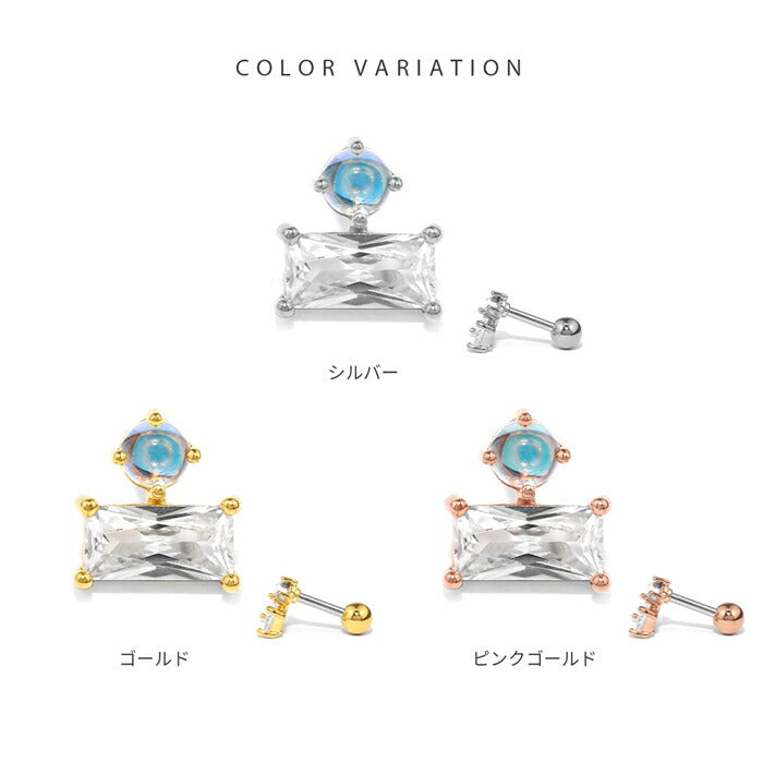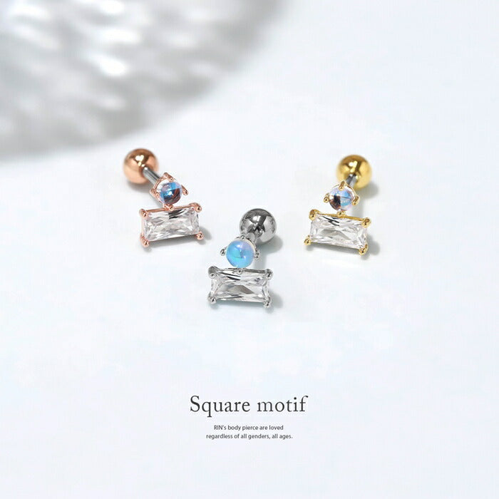 t1141-109 ボディピアス 16G 軟骨ピアス 金属アレルギー対応 サージカルステンレス つけっぱなし ストレートバーベル レディース スクエア クリアジュエル CZ スタイリッシュ シルバー ゴールド ピンクゴールド きれい パーティー 大人 プレゼント ギフト 片耳用