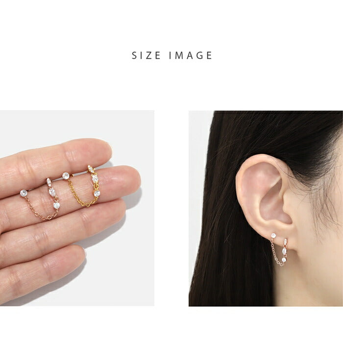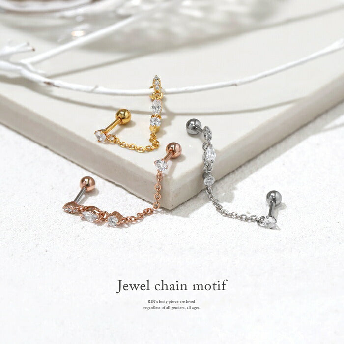 t1141-111 ボディピアス 軟骨ピアス 16G ダブルバーベル サージカルステンレス 金属アレルギー対応 キュービックジルコニア ストレートバーベル チェーン 立爪 マーキーズ キラキラ イヤーロブ パーティ 洗練された 大人キレイ お出かけ ギフト 片耳用