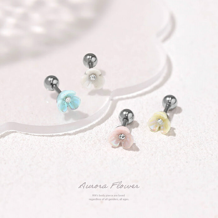 16G 花 小花 オーロラ フラワー プチ 小さい ストレートバーベル 【片耳用】 軟骨1508 t1141-112