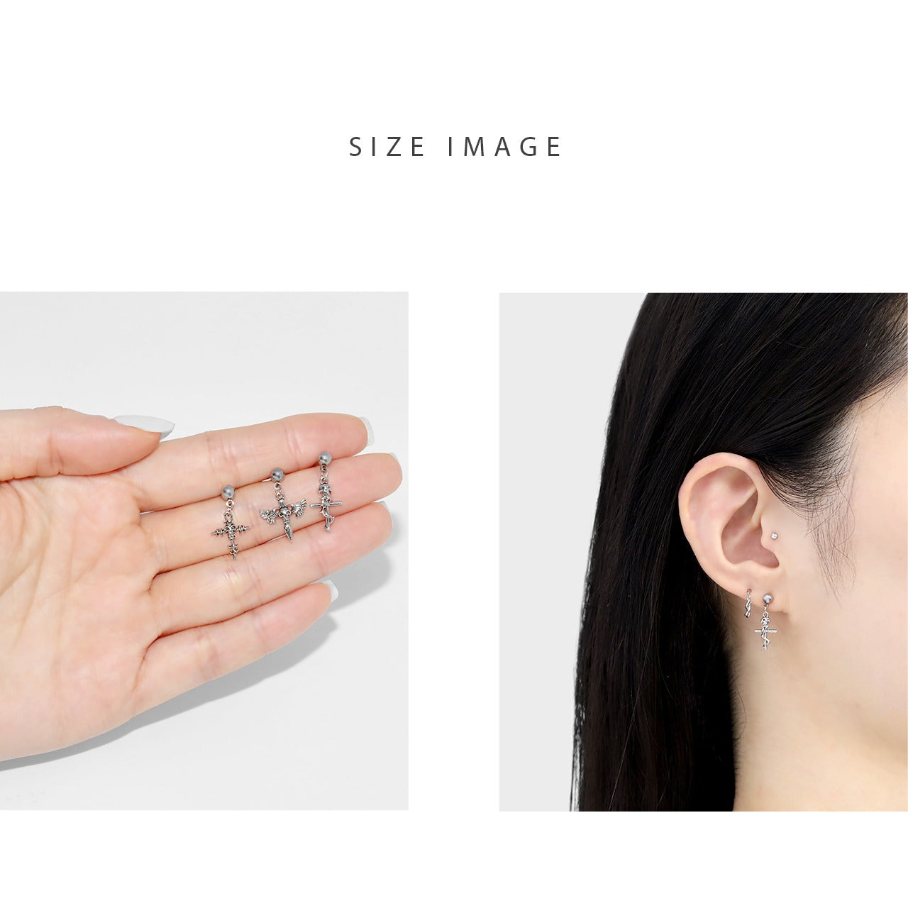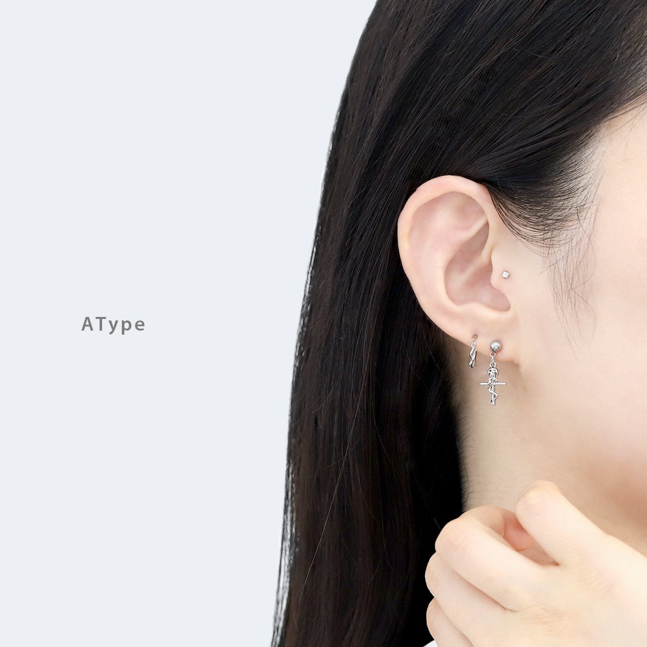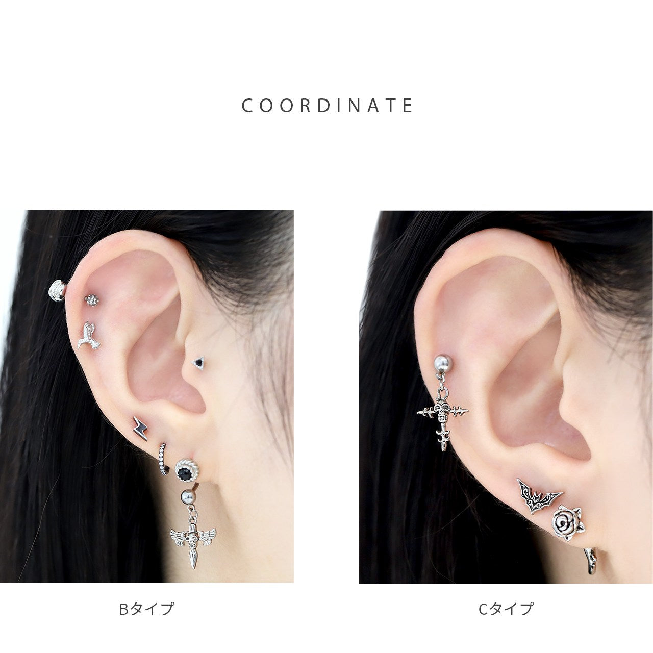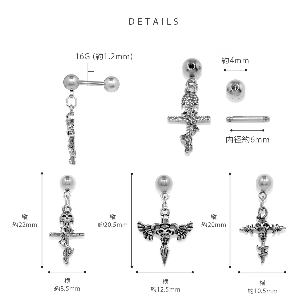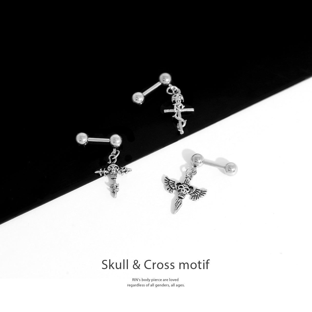 t1141-51 軟骨ピアス 16G ボディピアス どくろ 十字架 スカル & クロス 揺れる スタイリッシュ トーテム ストレートバーベル ピアス サージカルステンレス 片耳用