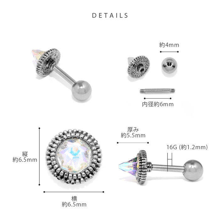 t1141-57 軟骨ピアス 16G ボディピアス ジュエル コーン クリスタル オーロラ レインボー 三角 サージカルステンレス 金アレ ストレートバーベル ピアス 片耳用