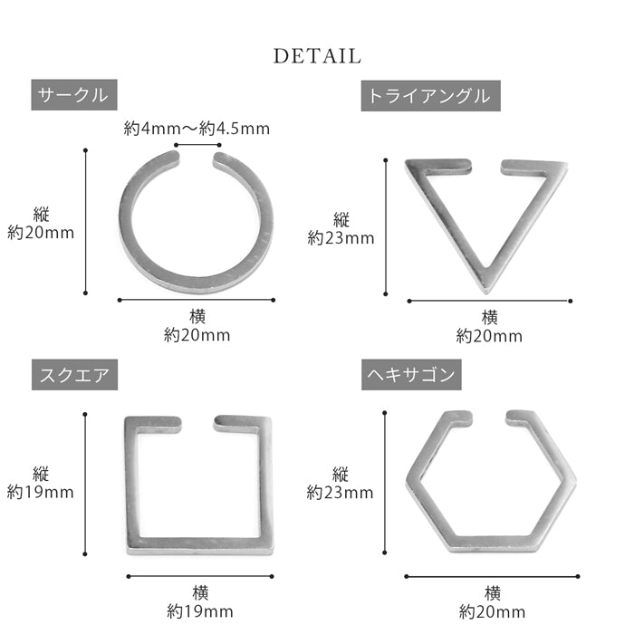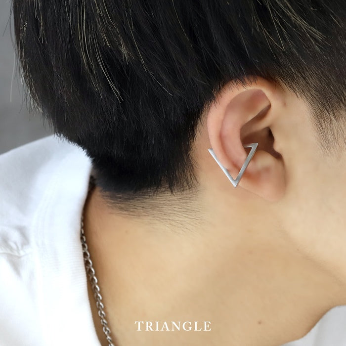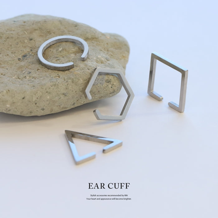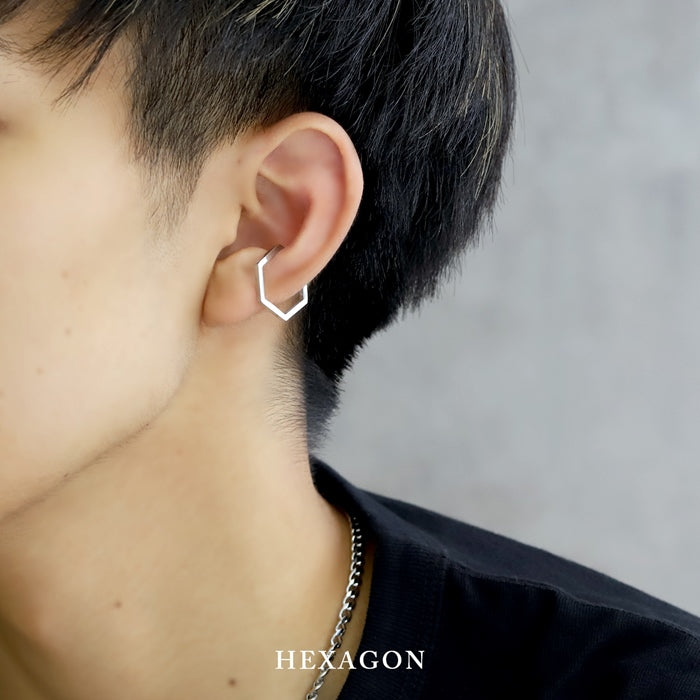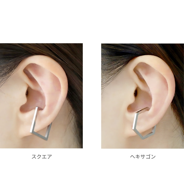 t1141-60 イヤーカフ 大ぶり メンズ レディース ピアス フェイクピアス リングピアス 片耳 イヤリング シンプル サージカルステンレス 金属アレルギー対応 シルバー サークル トライアングル スクエア ヘキサゴン