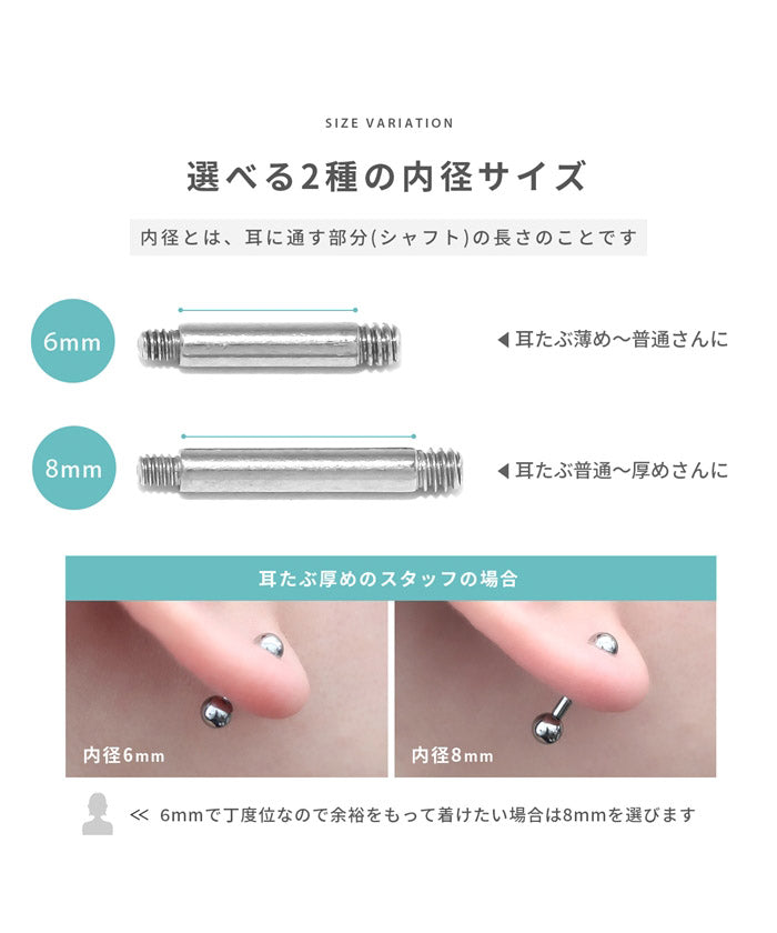 ★ t1141-61 ボディピアス 16G 14G 軟骨ピアス 内径 6mm 8mm つけっぱなし マジックシャフト ストレートバーベル サージカルステンレス 金属アレルギー シャフト パーツ カスタマイズ ファーストピアス セカンドピアス ボディーピアス 片耳用 凛 RIN