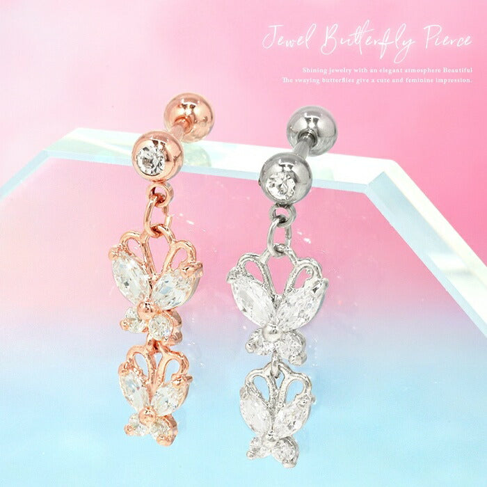 ★【全品送料無料】 軟骨ピアス 16G ボディピアス かわいい 蝶々 チャーム サージカルステンレス 蝶 ストレートバーベル シルバー ピンクゴールド ボディピ おしゃれ きれいめ 耳たぶ ヘリックス 片耳用