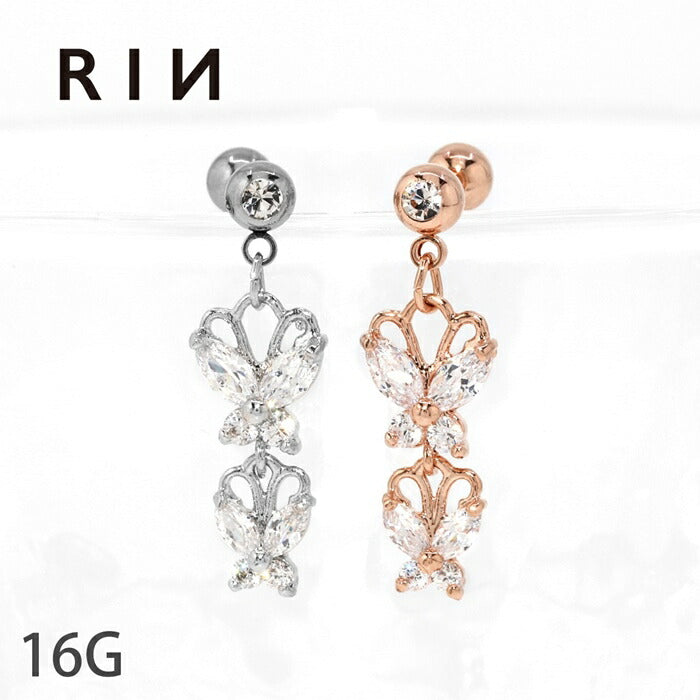 16G 軟骨ピアス 蝶々 ジュエル ストレートバーベル 軟骨チャーム付0209 t1141-68