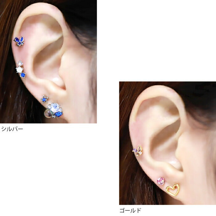 軟骨ピアス 16G ボディピアス サージカルステンレス 金属アレルギー対応 かわいい シルバー ゴールド ピンクゴールド 蝶 バタフライ ジュエル キラキラ レディース セカンドピアス ストレートバーベル 耳たぶ 軟骨用
