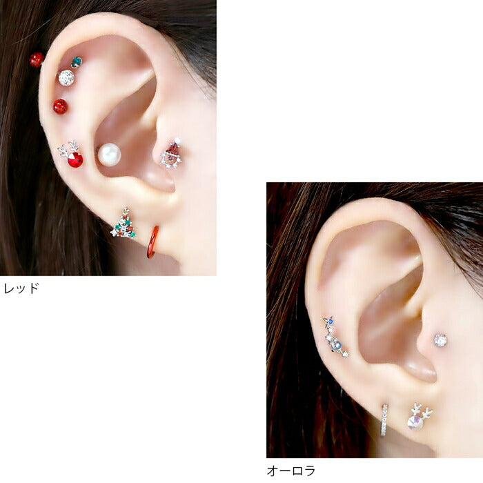 【全品送料無料】 ボディピアス 16G 軟骨ピアス ジュエル キラキラ トナカイ 角 クリスマス サージカルステンレス 金属アレルギー対応 可愛い シルバー オーロラ レッド グリーン レディース 耳たぶ 片耳用 耳