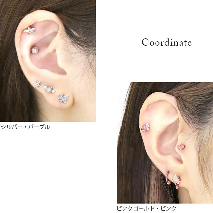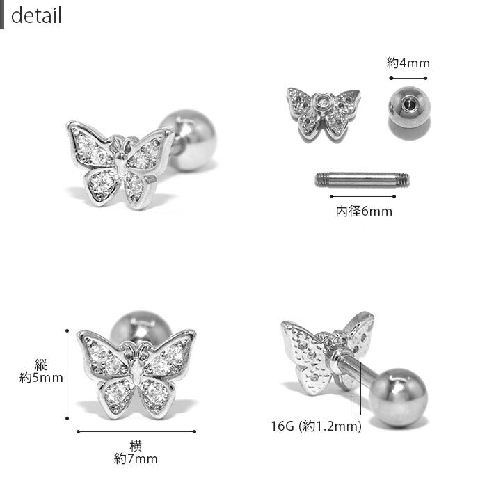 ★t1141-86 ボディピアス 軟骨ピアス 16G 蝶 バタフライ ピアス 金属アレルギー サージカルステンレス ストレートバーベル シルバー ピンクゴールド レディース シンプル ジュエル キュービックジルコニア ステンレスピアス セカンドピアス キラキラ ヘリックス 軟骨用 片耳用
