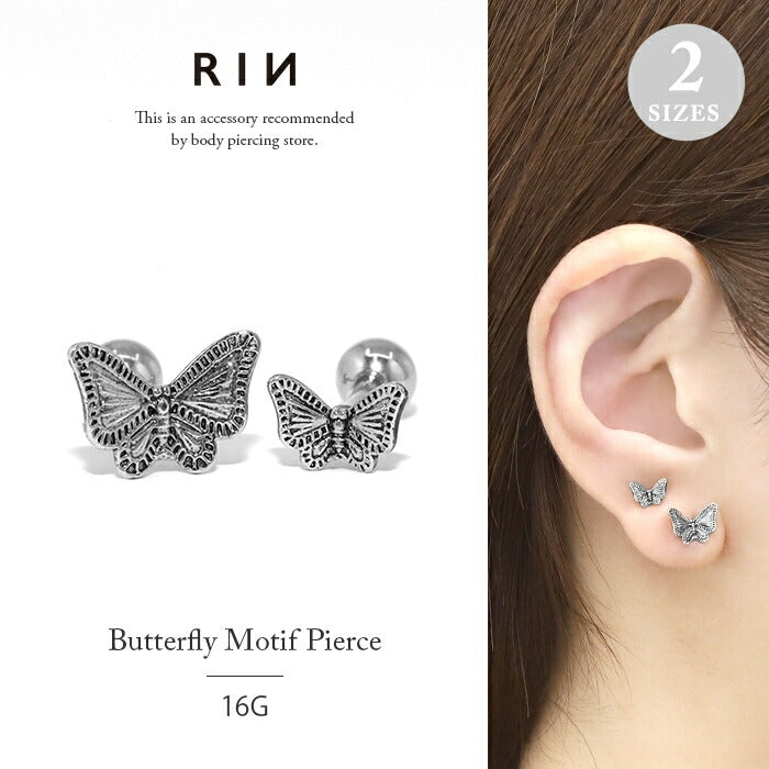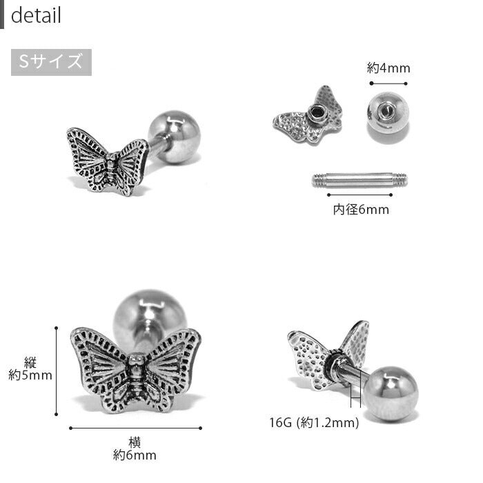 t1141-87 ボディピアス 軟骨ピアス 16G 蝶々 ピアス 金属アレルギー サージカルステンレス ストレートバーベル シルバー ステンレスピアス セカンドピアス レディース シンプル ボディ ピアス ヘリックス 耳たぶ 軟骨用 片耳用