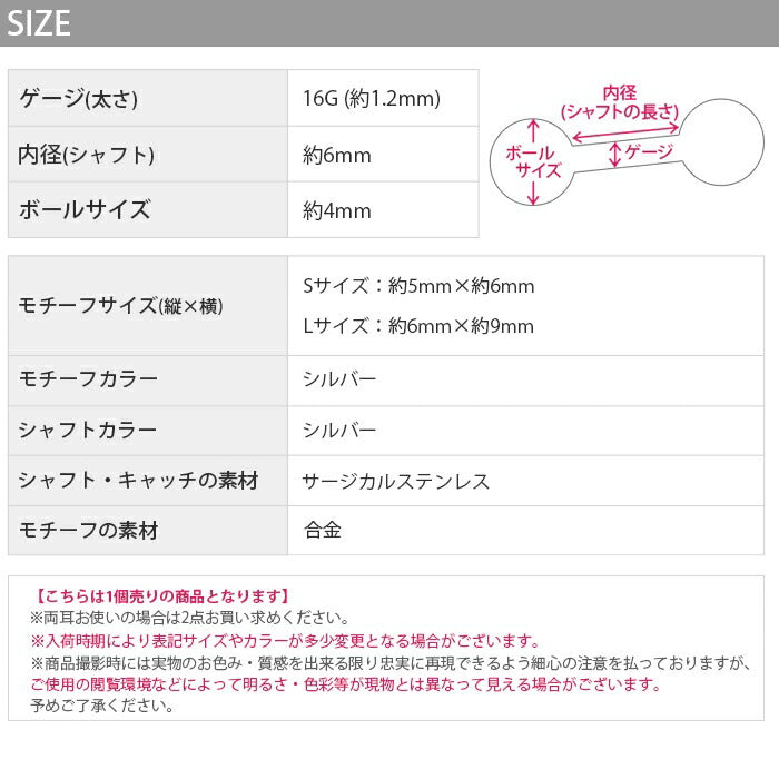 Sサイズ:約5mm×約6mm Lサイズ:約6mm×約9mm