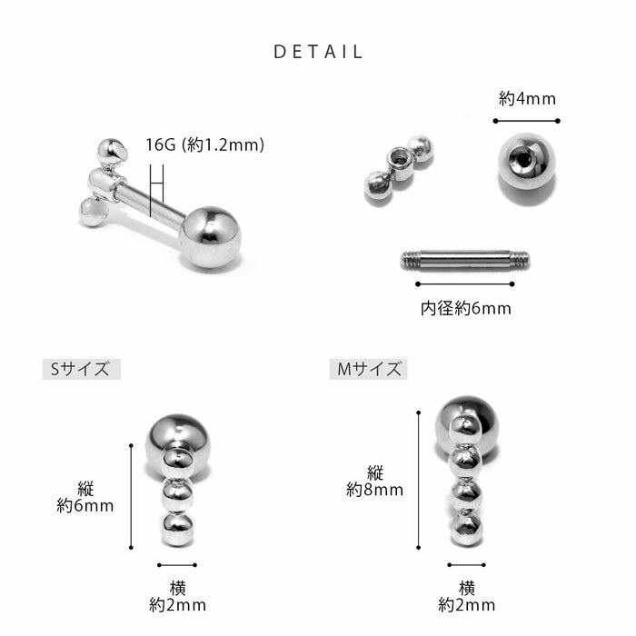 16G ボディピアス 軟骨ピアス ボール シンプル 小さめ スマート ストレートバーベル 軟骨1406 t1141-94