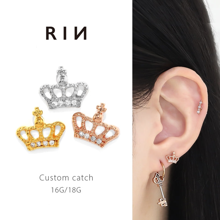t1142-030-c キャッチ 16G 18G クラウン 王冠 ジュエル ジルコニア かわいい おしゃれ アレンジ パーツ カスタマイズ ピアス ピアス ピアスパーツ 片耳用
