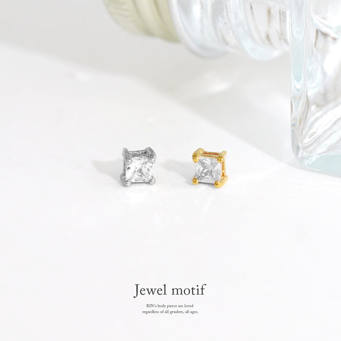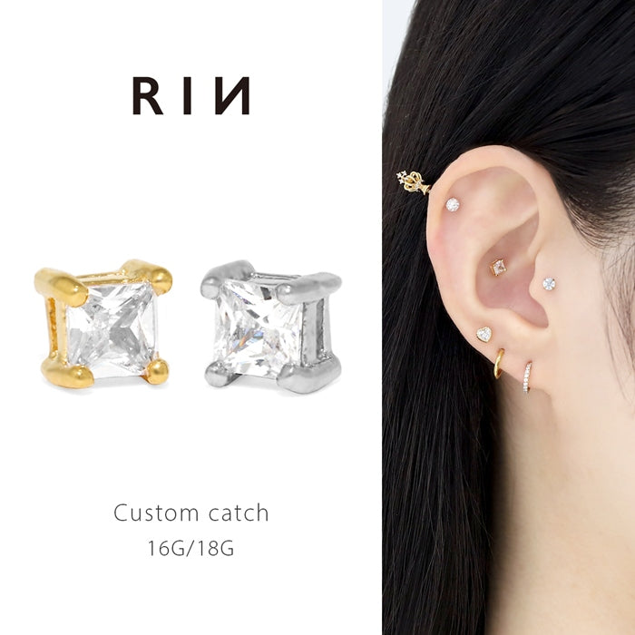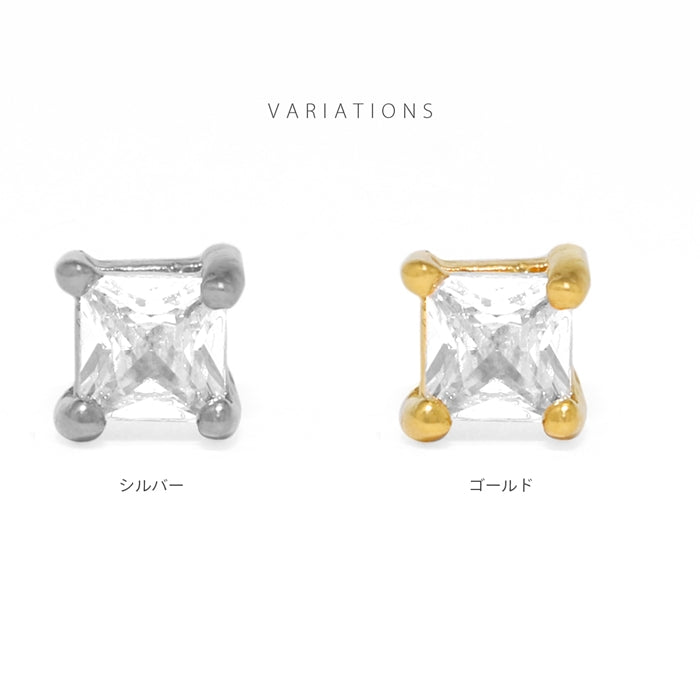 t1142-036-c キャッチ 16G 18G スクエア ジュエル キラキラ 立爪 CZ 小さい 上品 アレンジ パーツ カスタマイズ ピアス 16ゲージ 18ゲージ ピアス ピアスパーツ 片耳用