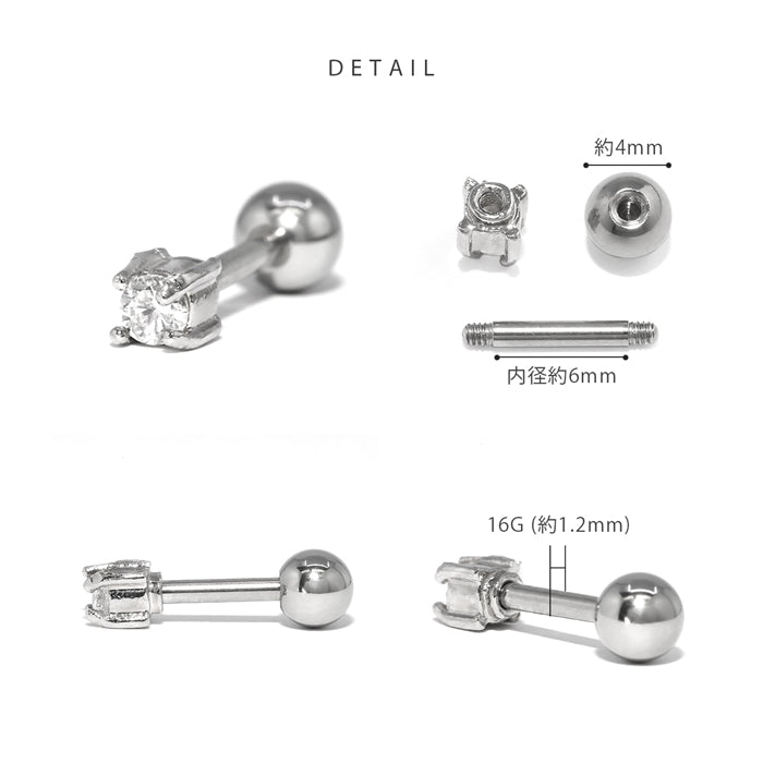 16G ジュエル シンプル プチ ボディピアス ストレートバーベル 片耳用 軟骨0857 t1142-054