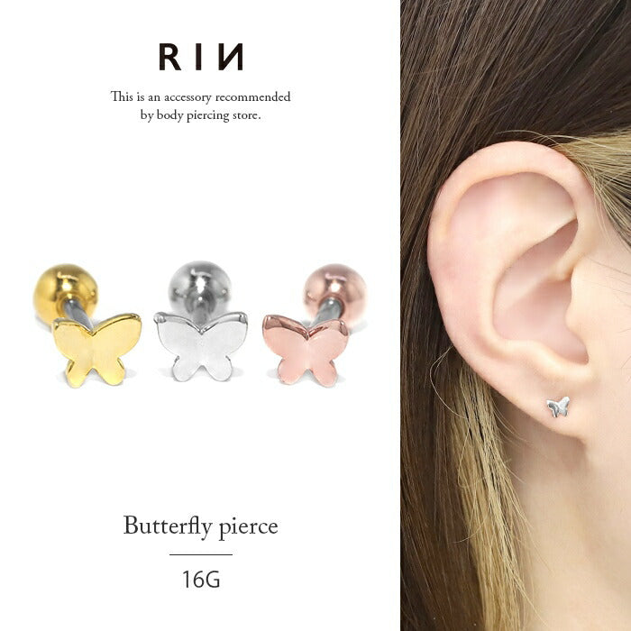 ★【全品送料無料】 軟骨ピアス 16G ボディピアス かわいい キャッチ チャーム サージカルステンレス 金属アレルギー対応 蝶 蝶々 バタフライ パピヨン シンプル おしゃれ ストレートバーベル セカンドピアス メンズ 軟骨 ピアス ボディーピアス