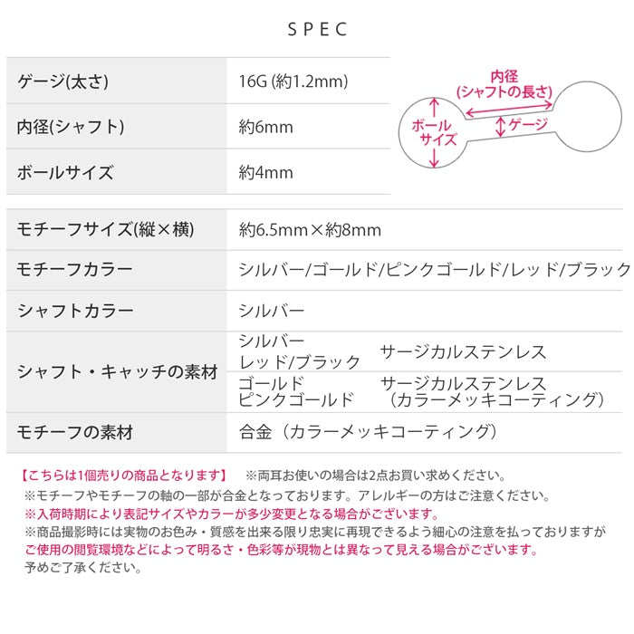※モチーフやモチーフの軸の一部が合金となっております。アレルギーの方はご注意ください。