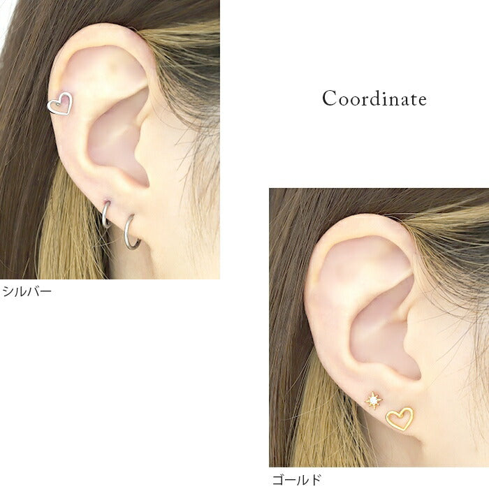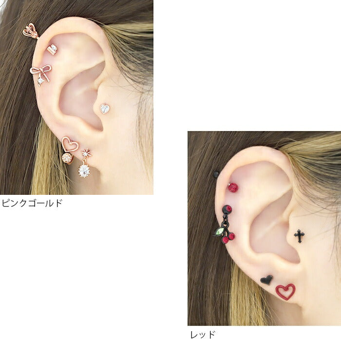 ★t1501-152 軟骨ピアス 16G かわいい ハート キャッチ チャーム ボディピアス フレーム つけっぱなし シルバー ゴールド ピンクゴールド レッド サージカルステンレス 金属アレルギー対応 可愛い シンプル 片耳用