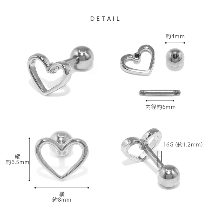 16G ボディピアス 軟骨ピアス 16ゲージ ハート フレーム 軟骨1055 t1501-152