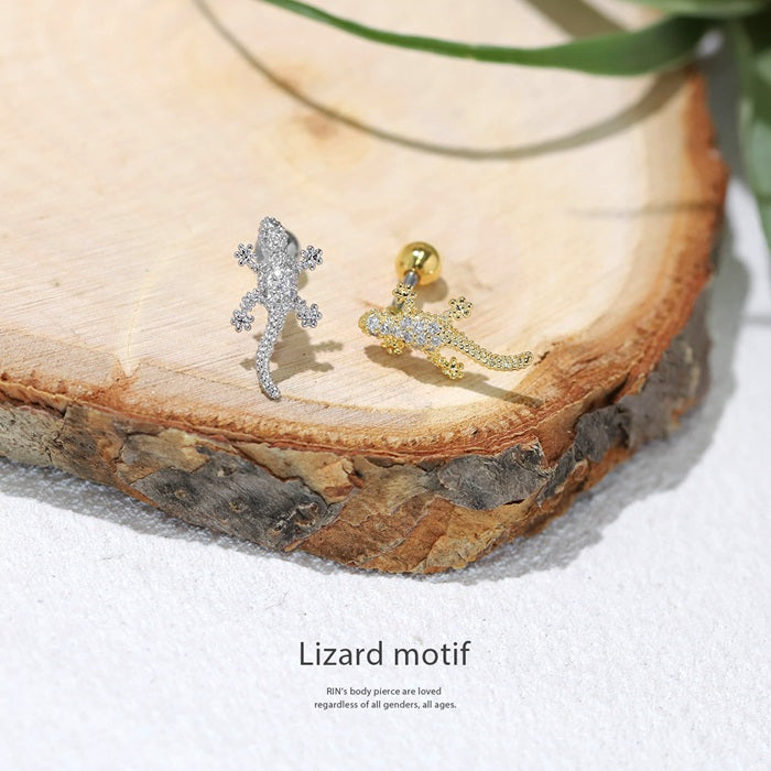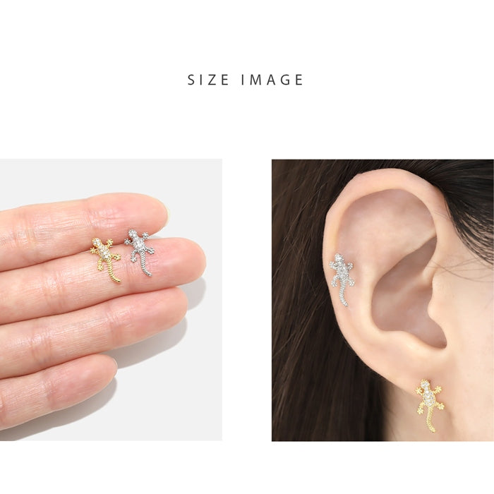 t1501-155【全品送料無料】 軟骨ピアス 16G ボディピアス かわいい キャッチ チャーム サージカルステンレス 金属アレルギー対応 トカゲ とかげ 蜥蜴 爬虫類 は虫類 ジュエル アニマル キラキラ おしゃれ セカンドピアス メンズ 軟骨 ピアス ボディーピアス