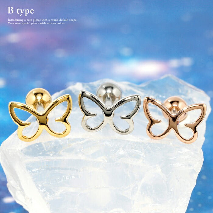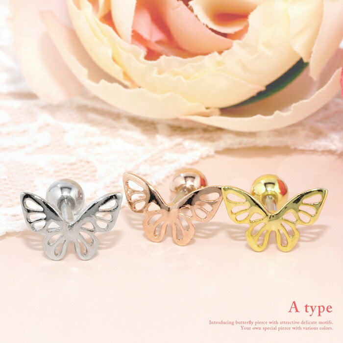 【全品送料無料】 軟骨ピアス 16G ボディピアス かわいい キャッチ サージカルステンレス 金属アレルギー対応 蝶々 バタフライ シルバー ゴールド ピンクゴールド おしゃれ 片耳用 耳たぶ用 レディース