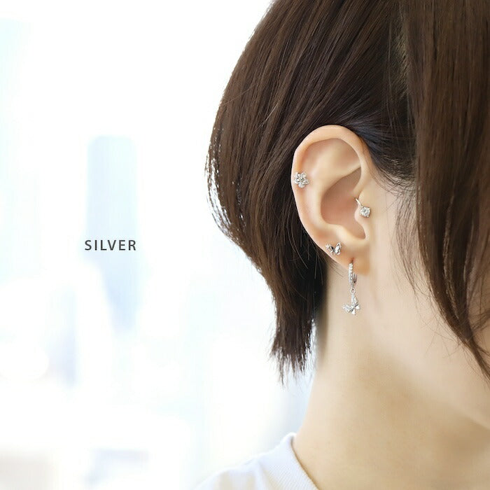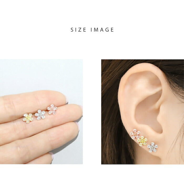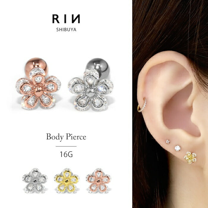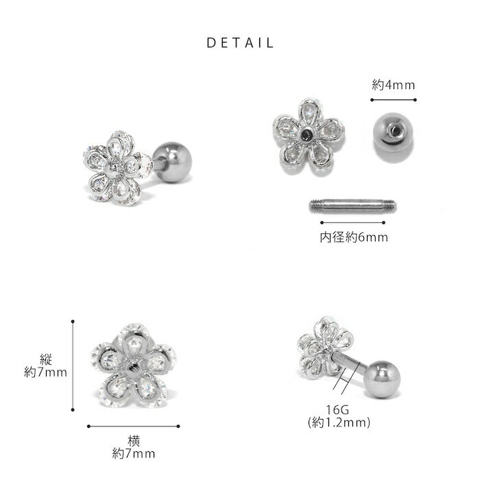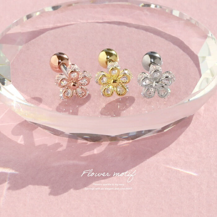 ★t1501-172 軟骨ピアス 16G ボディピアス サージカルステンレス つけっぱなし 金属アレルギー 金属アレルギー対応 花 フラワー ストレートバーベル シルバー ゴールド ピンクゴールド かわいい トラガスピアス ヘリックスピアス ピアス 片耳用