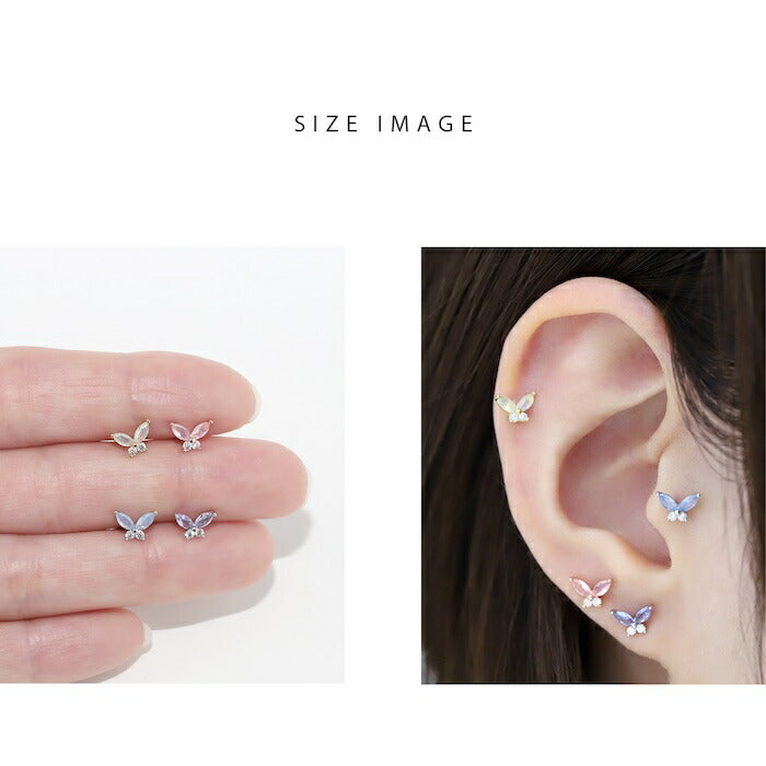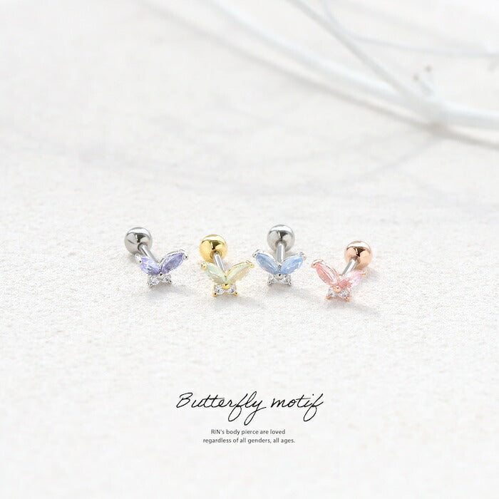 16G 蝶 蝶々 バタフライ ボディピアス ストレートバーベル パステルカラー CZ 片耳用 軟骨1442 t1501-176