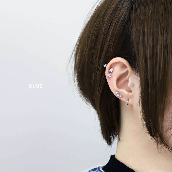 t1501-176 軟骨ピアス 16G 蝶 蝶々 バタフライ ボディピアス つけっぱなし 金属アレルギー 金属アレルギー対応 サージカルステンレス ステンレス ストレートバーベル ブルー パープル グリーン ピンク かわいい シンプル ピアス キュービックジルコニア 片耳用