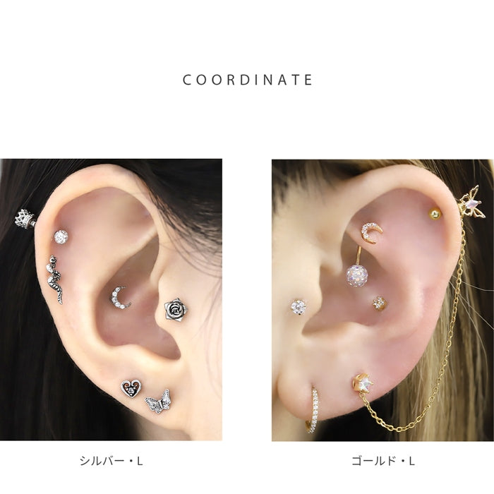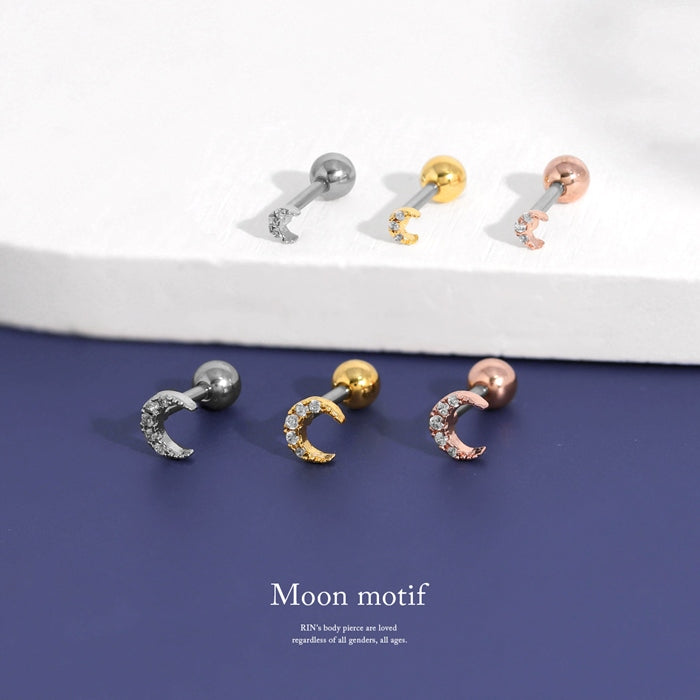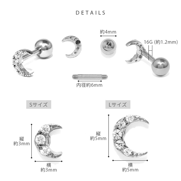 t1501-182 軟骨ピアス かわいい 16G ボディピアス 三日月 クレセント ムーン ジルコニア キラキラ ストレートバーベル ピアス サージカルステンレス 片耳用