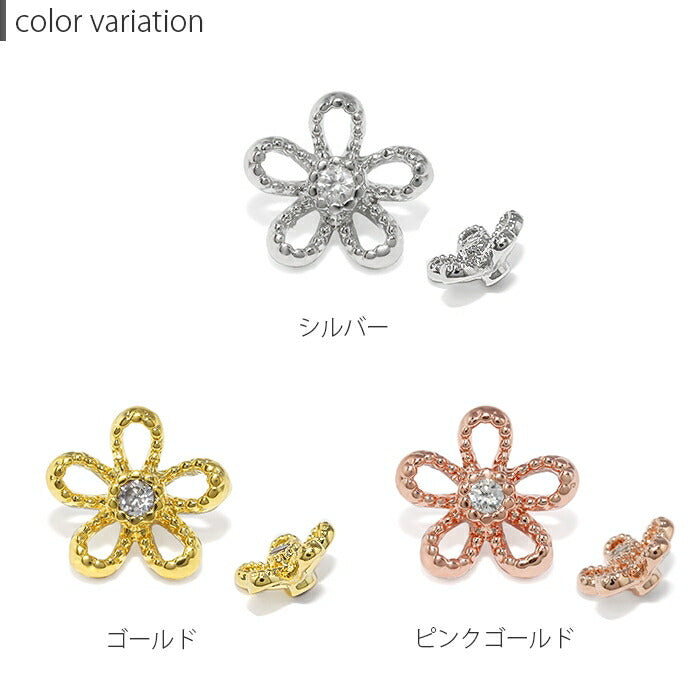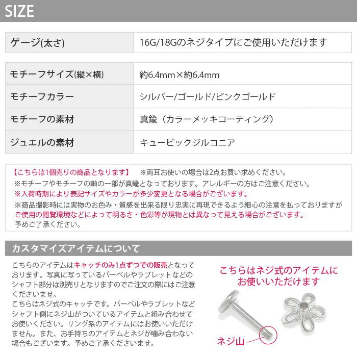 【全品送料無料】 キャッチ ボディピアス 16G 18G カスタマイズ 軟骨ピアス かわいい 花 フラワー ジュエル アレンジ カスタム ピアス パーツ 16ゲージ 18ゲージ 耳