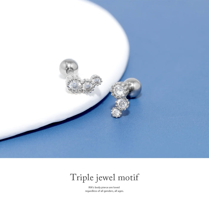 16G 3連ジュエル ストレートバーベル イヤーフィット 片耳用 軟骨0688 t1501-76
