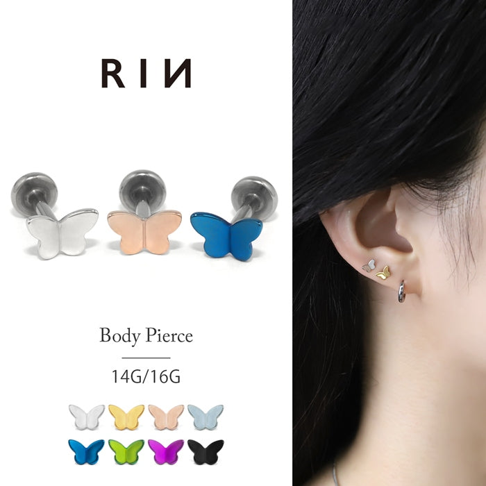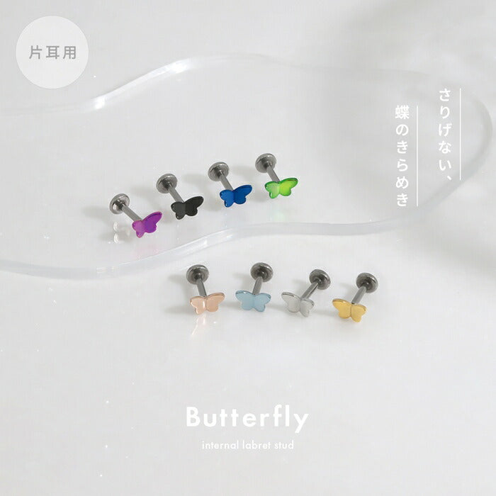 t8112-11 軟骨ピアス 16G 14G ボディピアス 金属アレルギー対応 金属アレルギー つけっぱなし サージカルステンレス ファーストピアス セカンドピアス レディース ゴールド ピンクゴールド シルバー ブラック 蝶 蝶々 ラブレット おすすめ プレゼント 片耳用
