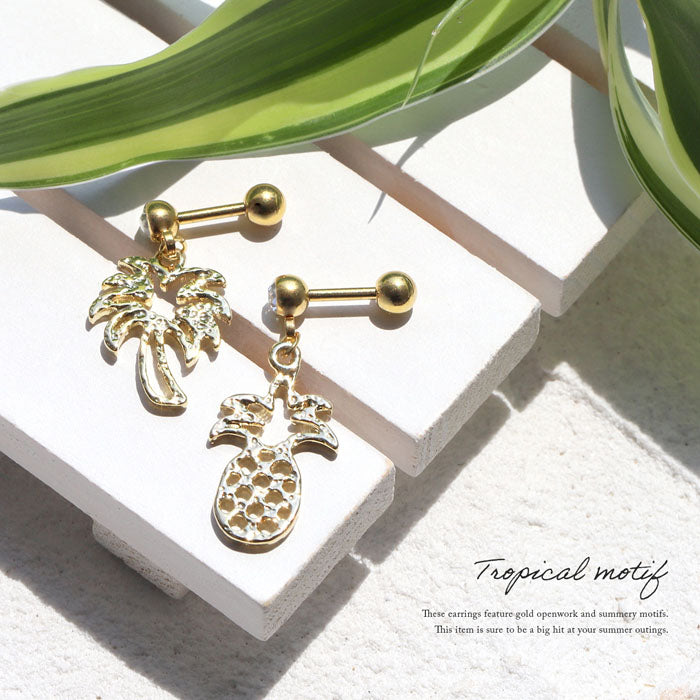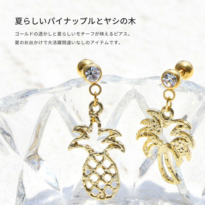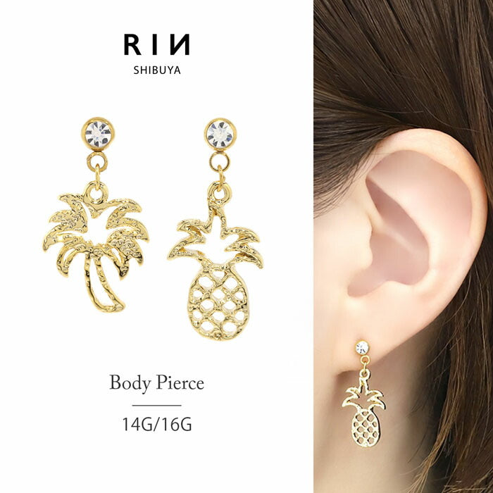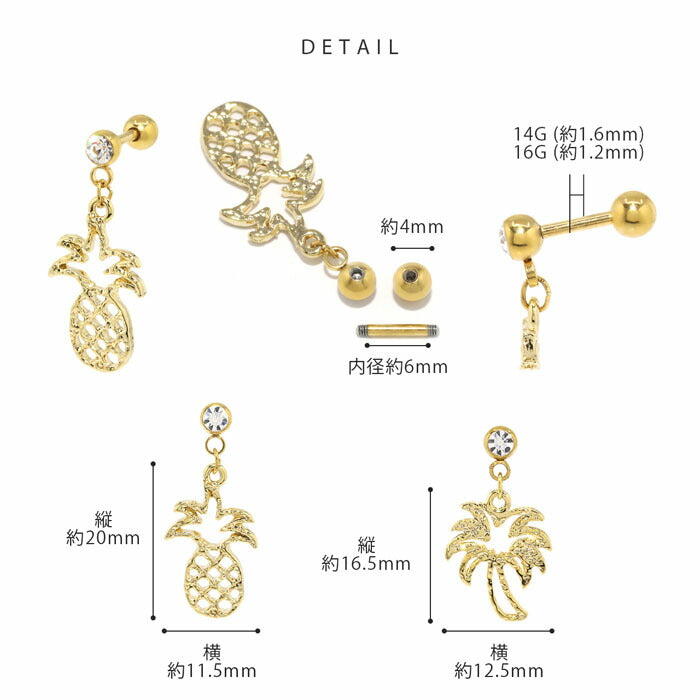 【全品送料無料】 ボディピアス 14G 16G 軟骨ピアス 14ゲージ 16ゲージ ヤシの木 パイナップル 南国 常夏 トロピカル パーム ハワイアン オリジナル0172 ストレートバーベル ボディーピアス 凛 軟骨用 ボディピアス専門店 なんこつピアス 耳 りん サージカルステンレス