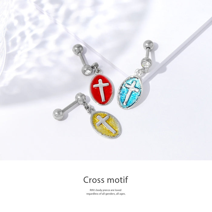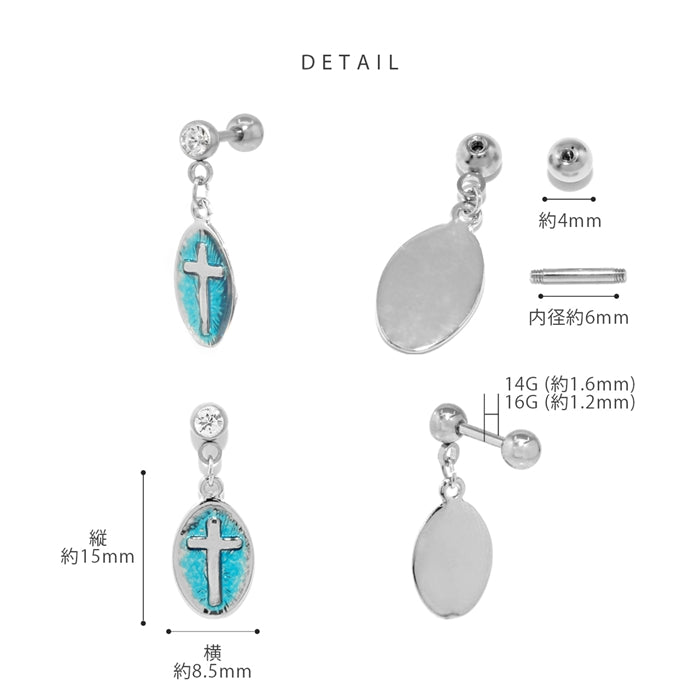 t8262-141 軟骨ピアス 16G ボディピアス 14G クロス 十字架 メダル メダイ つけっぱなし ピアス 金属アレルギー対応 ストレートバーベル サージカルステンレス 耳 なんこつ 揺れる 楕円 おしゃれ レディース メンズ 日常使い おでかけ 片耳用