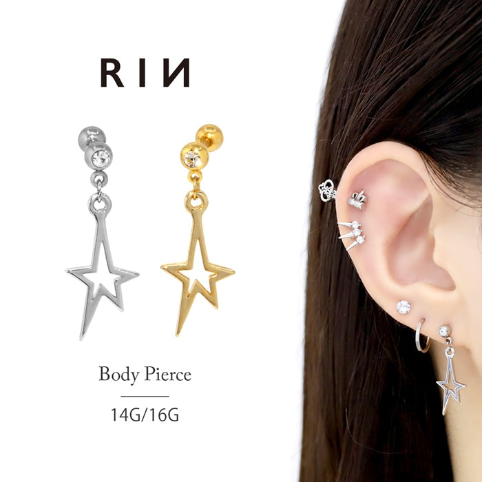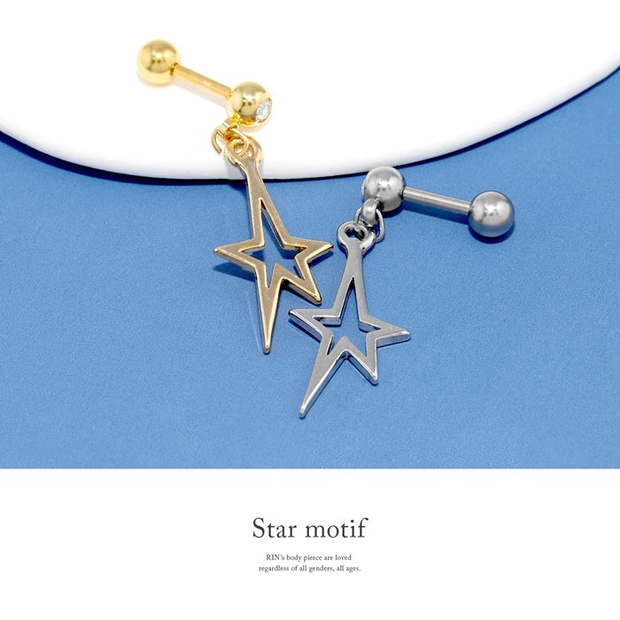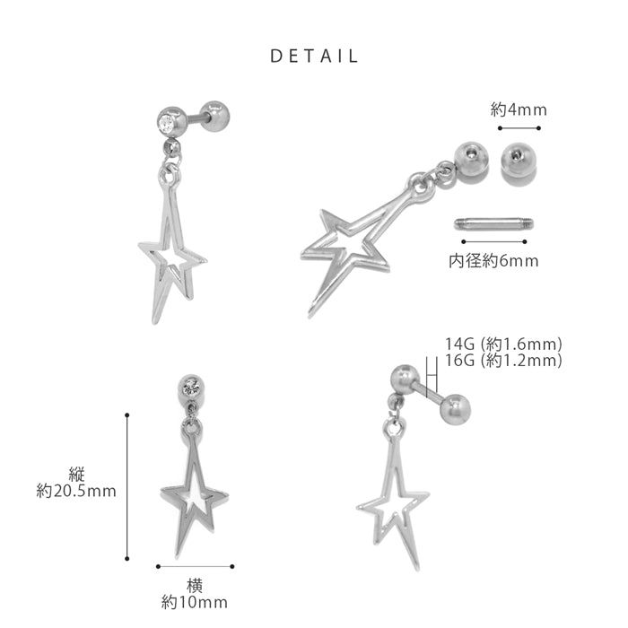 t8262-146 軟骨ピアス 14G 16G ボディピアス かわいい キャッチ チャーム サージカルステンレス 金属アレルギー対応 星 スター大ぶり 揺れる ストレートバーベル 耳たぶ ヘリックス ファーストピアス セカンドピアス メンズ 軟骨 ピアス ボディーピアス