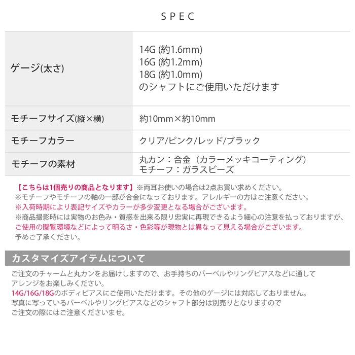 丸カン:合金(カラーメッキコーティング) モチーフ:ガラスビーズ |