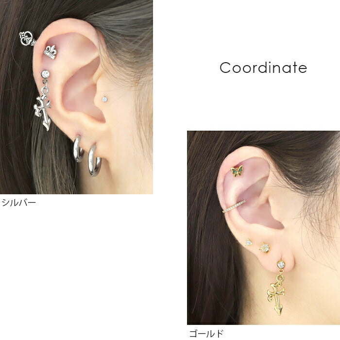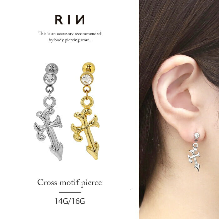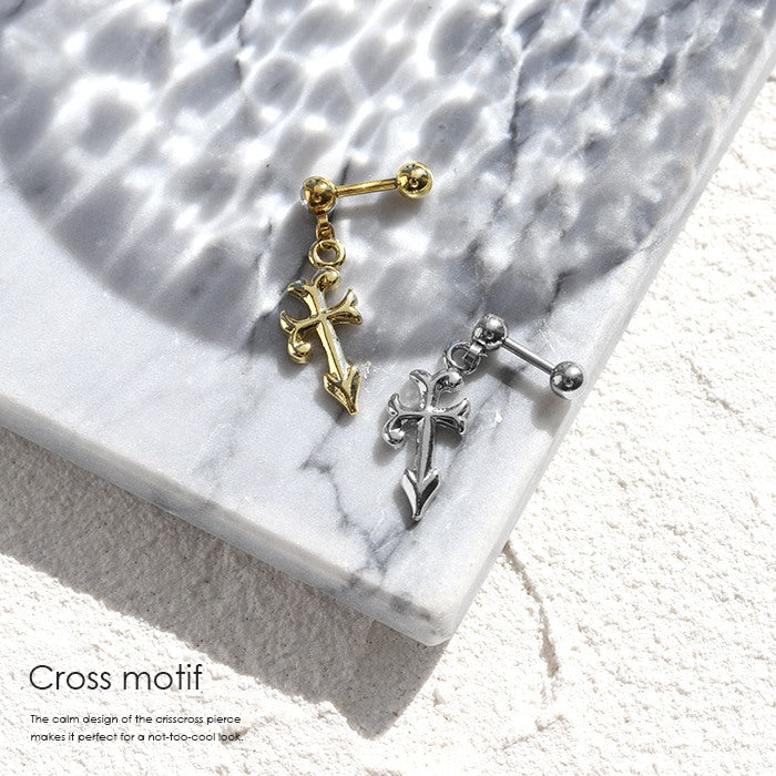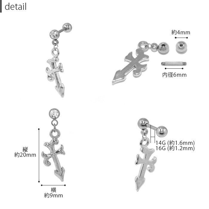 t8262-156 ボディピアス 軟骨ピアス 14G 16G 十字架 クロス ピアス 金属アレルギー サージカルステンレス ストレートバーベル シンプル キャッチ チャーム レディース メンズ ステンレスピアス セカンドピアス つけっぱなしピアス 揺れる シルバー ゴールド かわいい 軟骨用 片耳用