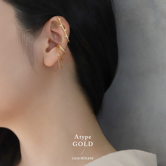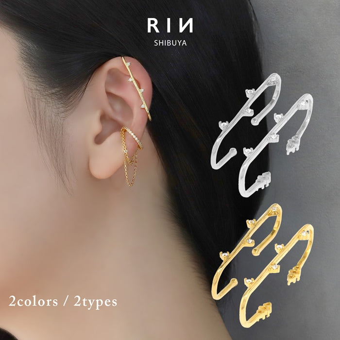 t8262-174 イヤーカフ インダストリアルイヤーカフ レディース イヤーカフス イヤカフ 大ぶり ジュエル ビジュー 大人 上品 カジュアル エレガント キラキラ シンプル ゴールド シルバー クリア インダストリアル イヤリング 片耳用 真鍮 インダス
